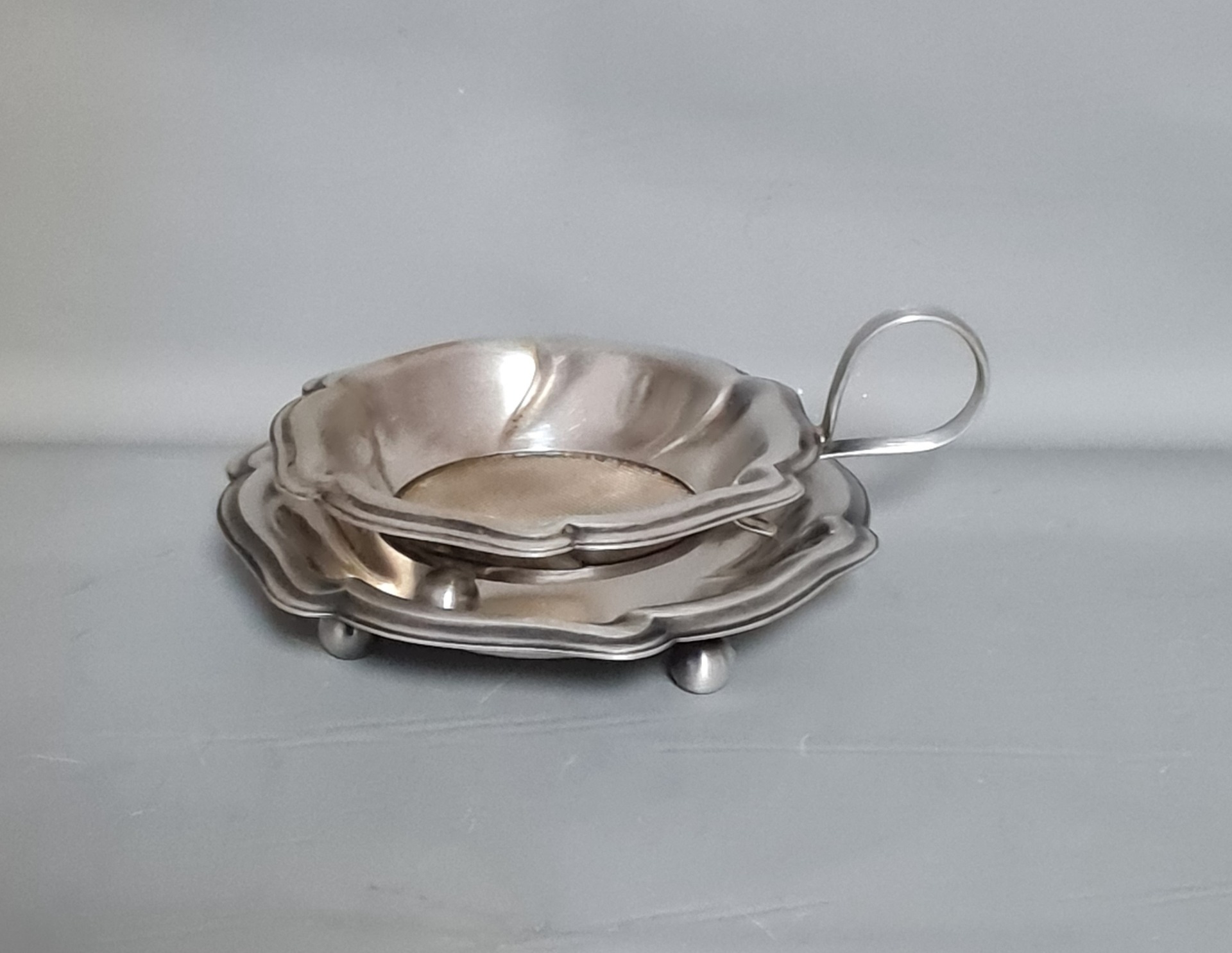 Alpaka - Sandrik - Sitko s podstavcom na prelievanie čaju, roky 1900 - 1940