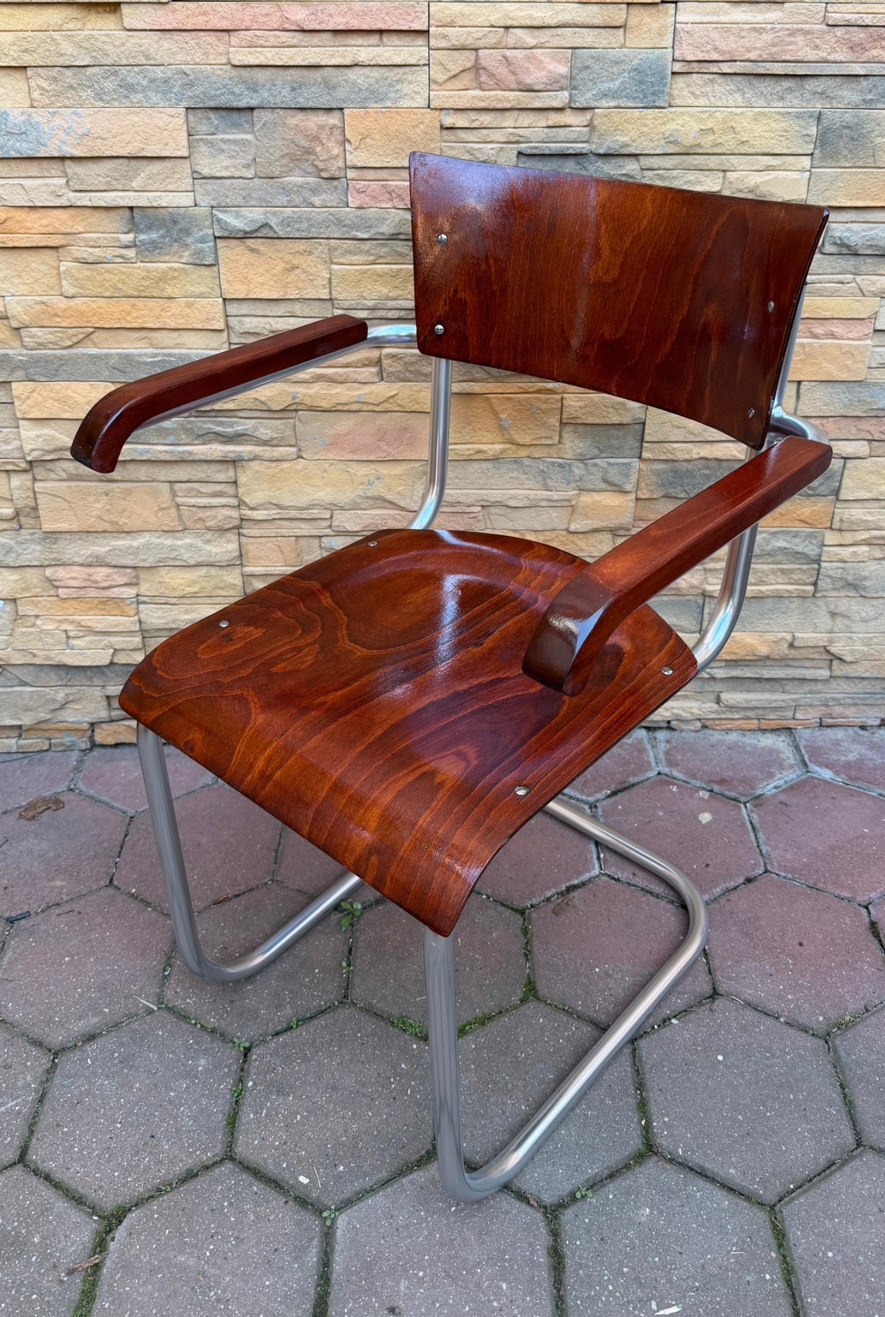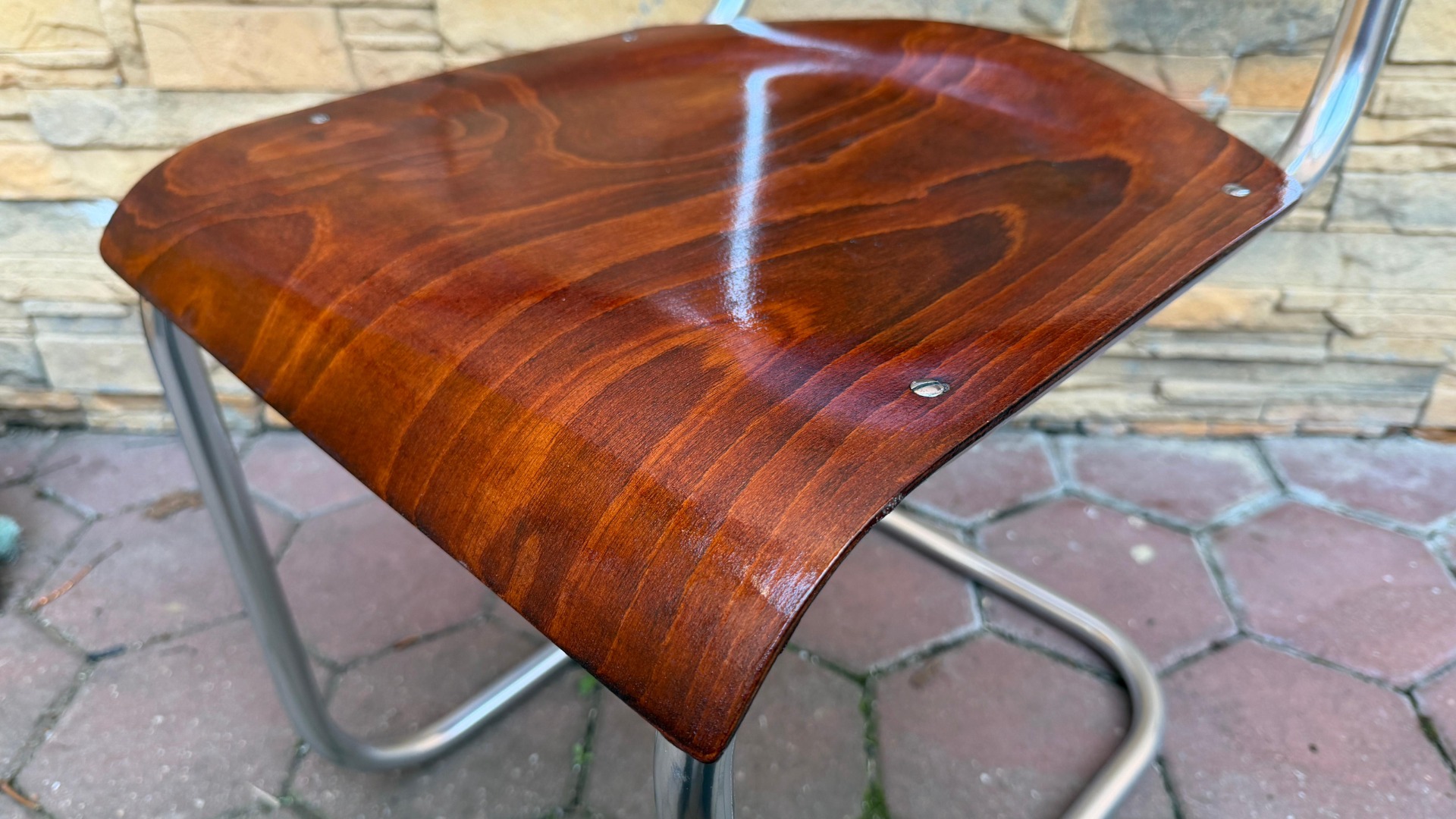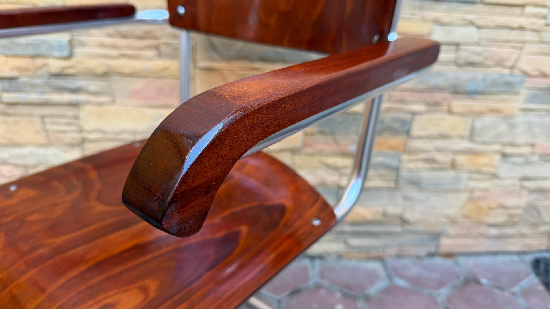 Chromovana stolička . polokreslo, funkcionalizmus, Mucke Molder, roky cca 1930 - 1950
