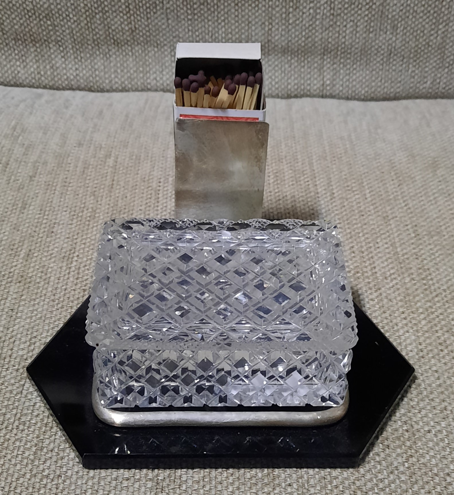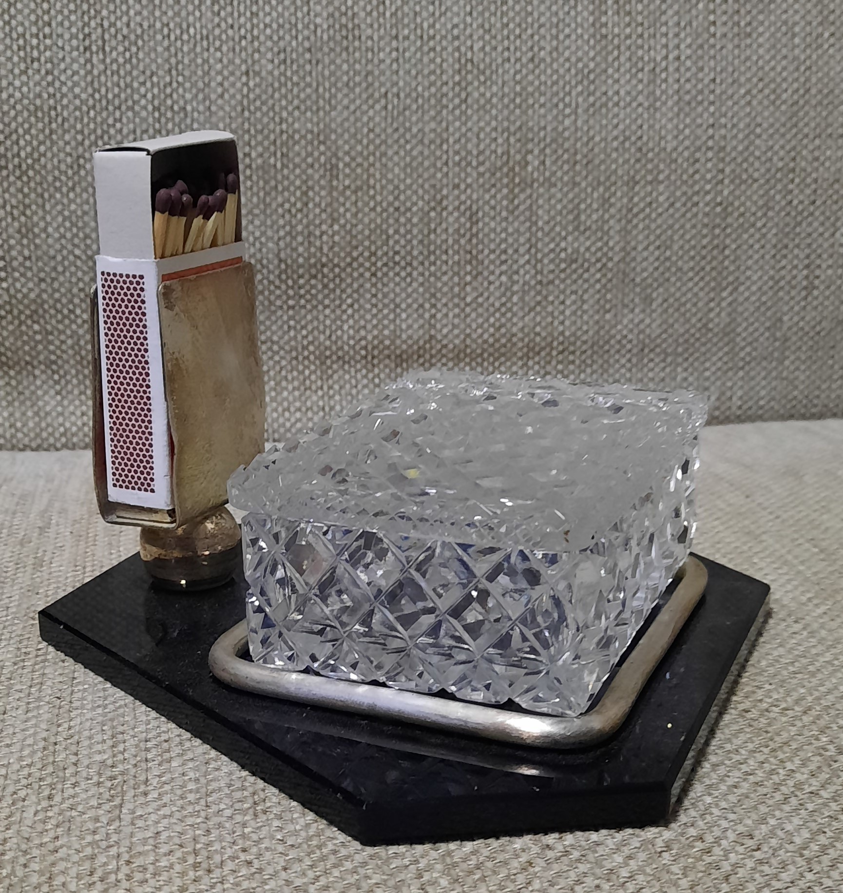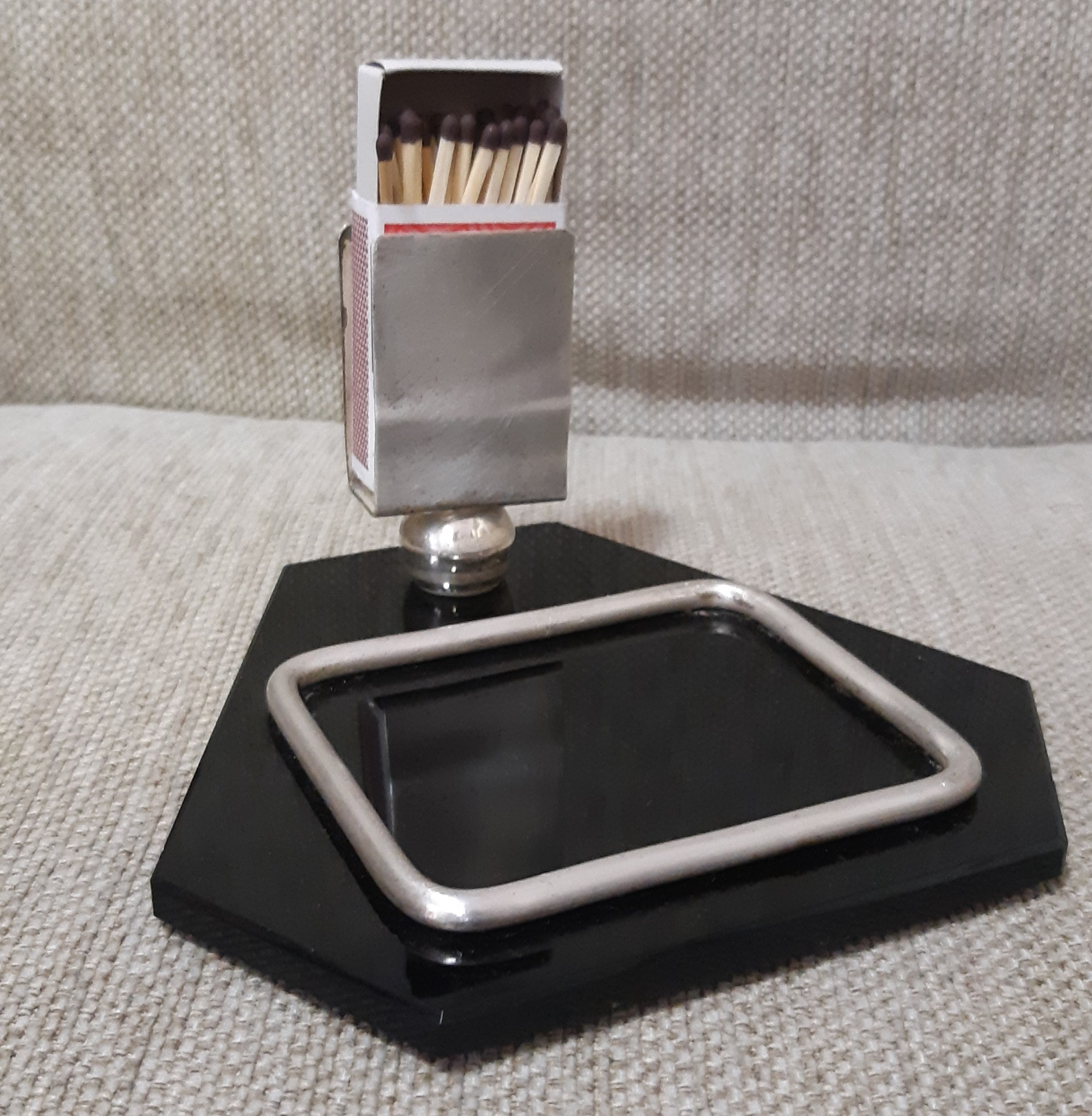 Fajčíarska súprava, alpaka + sklo, roky 1960 - 1970