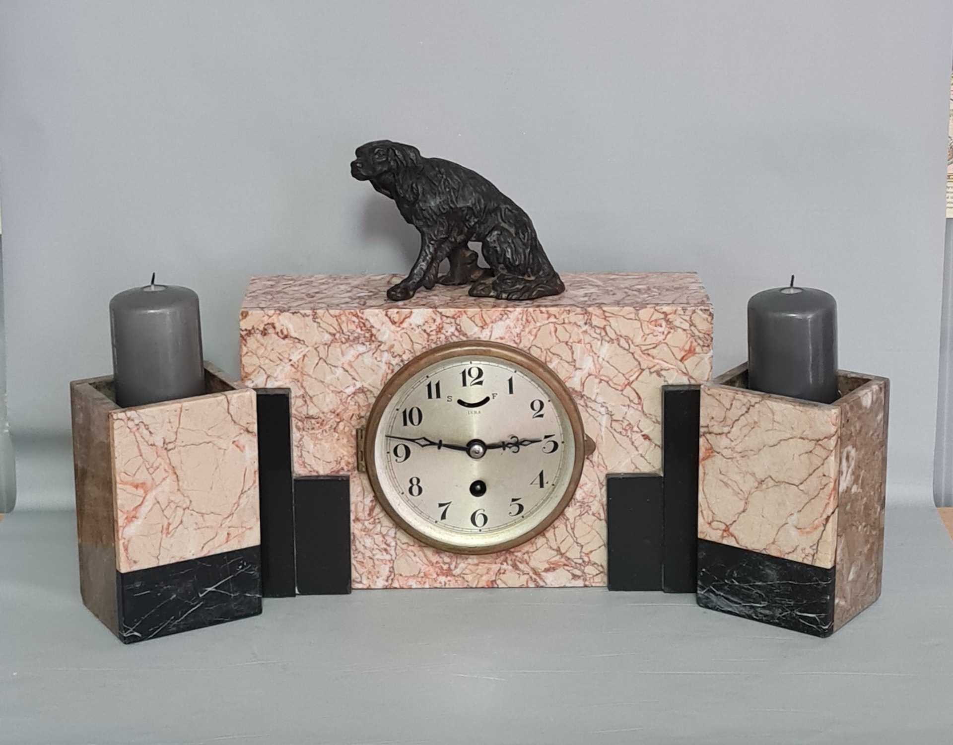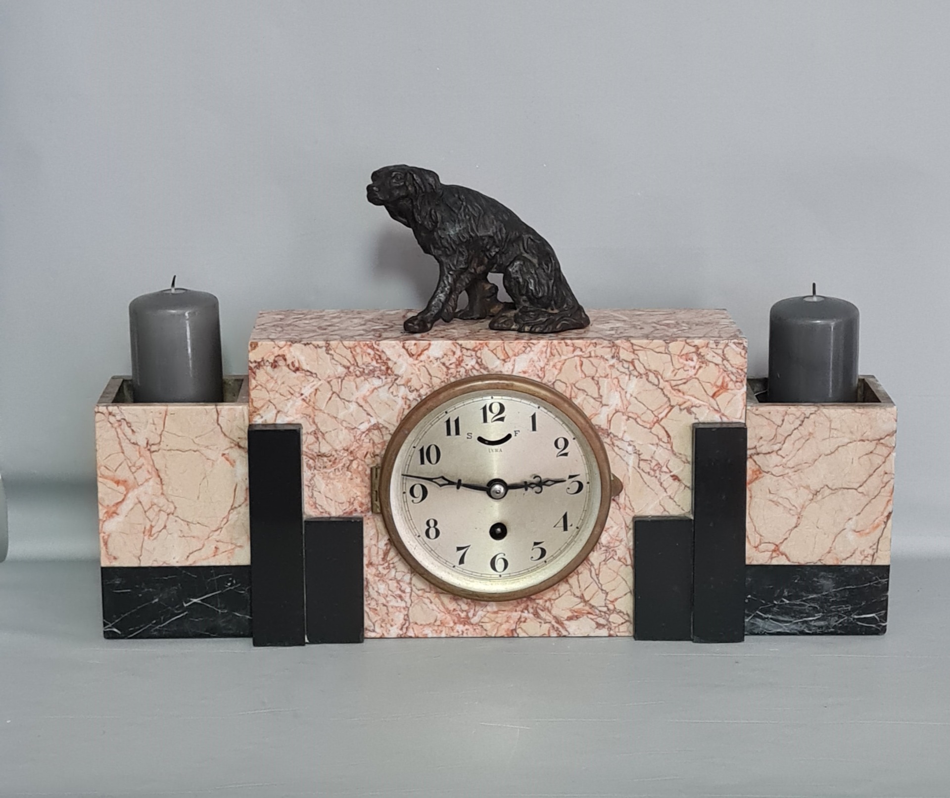 Ponúkame mramorové hodiny + svietniky, Art Deco štýl, Francúzsko .