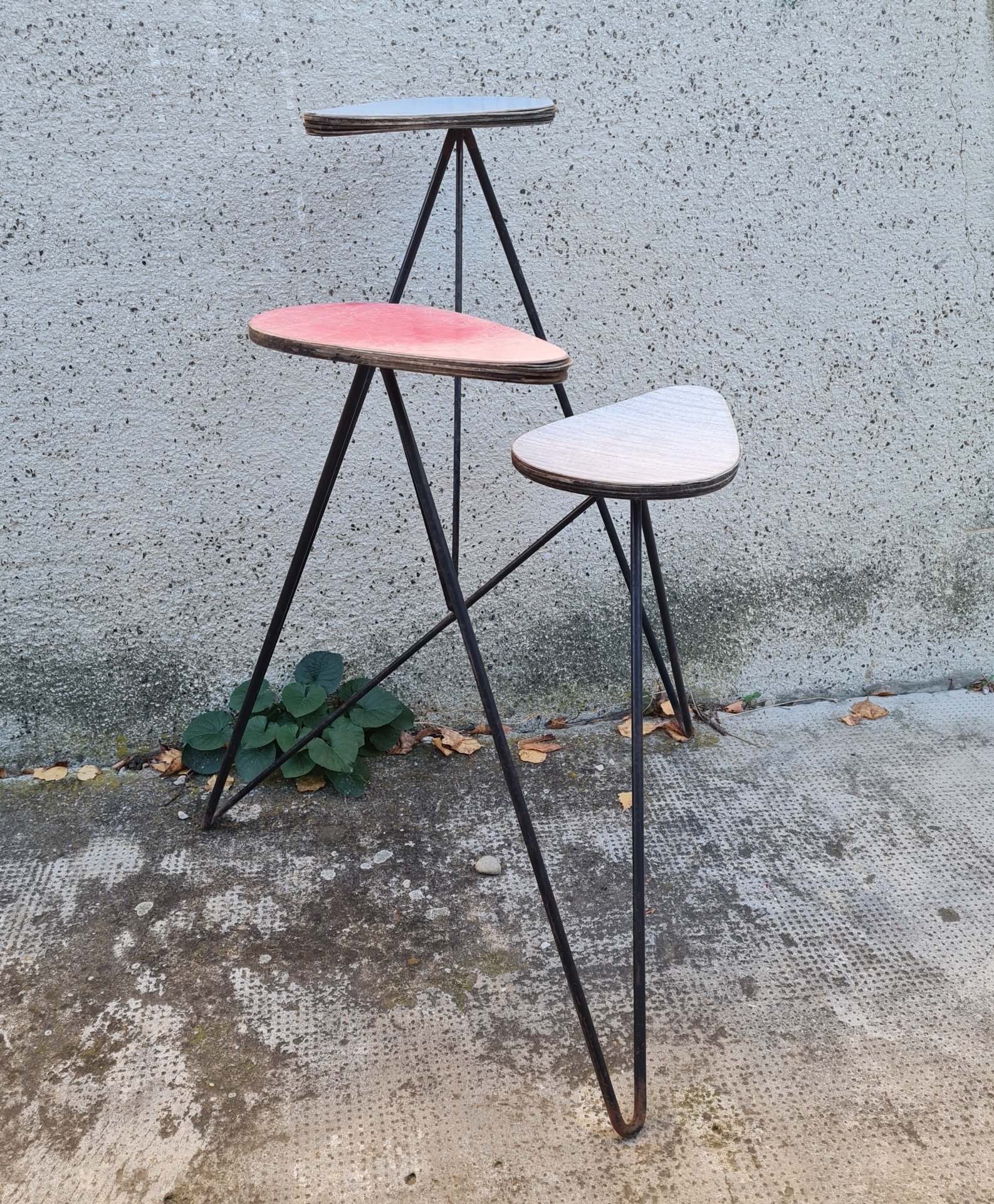 Kovový retro stojan na kvety - sošky, roky 1950 - 1970