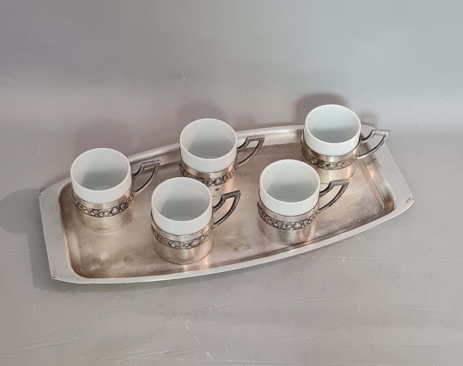Mocca súprava, Alpaca - Opalové sklo,  Art Deco, výborný stav, roky cca 1930 - 1940