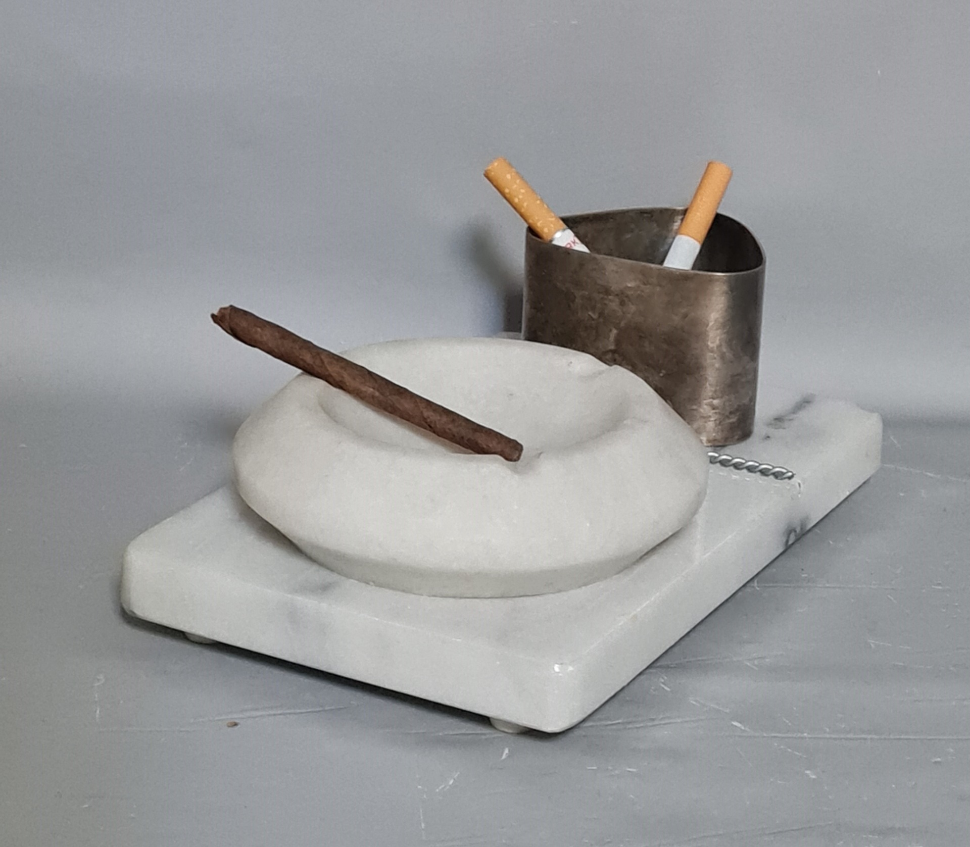 Mramorový stojan na cigarety s mramorovým popolníkom, roky 1950 - 1960