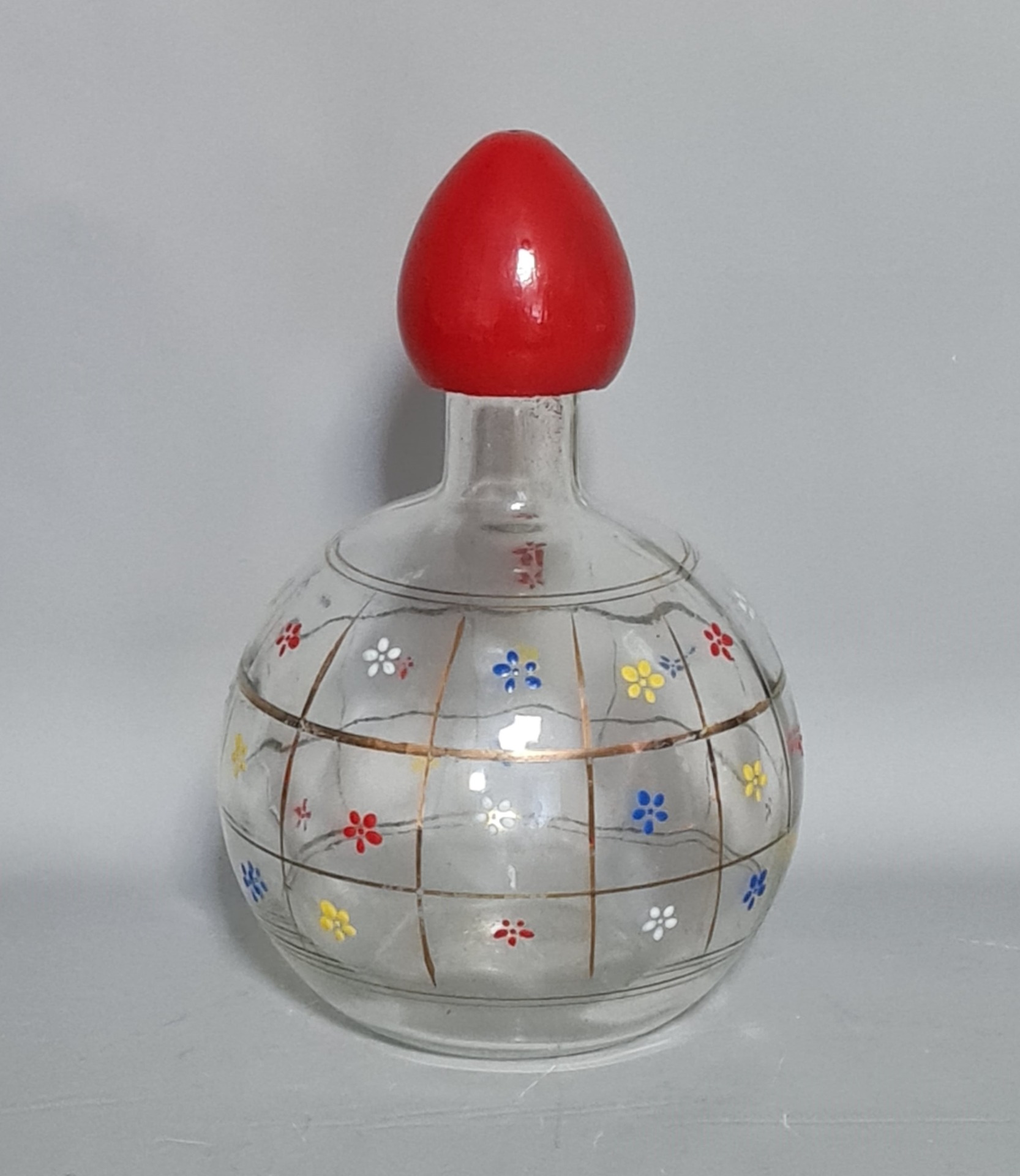 Ručne maľovaná sklenená karafa na alkohol, obsah cca 0,5 l, roky cca 1920 - 1940