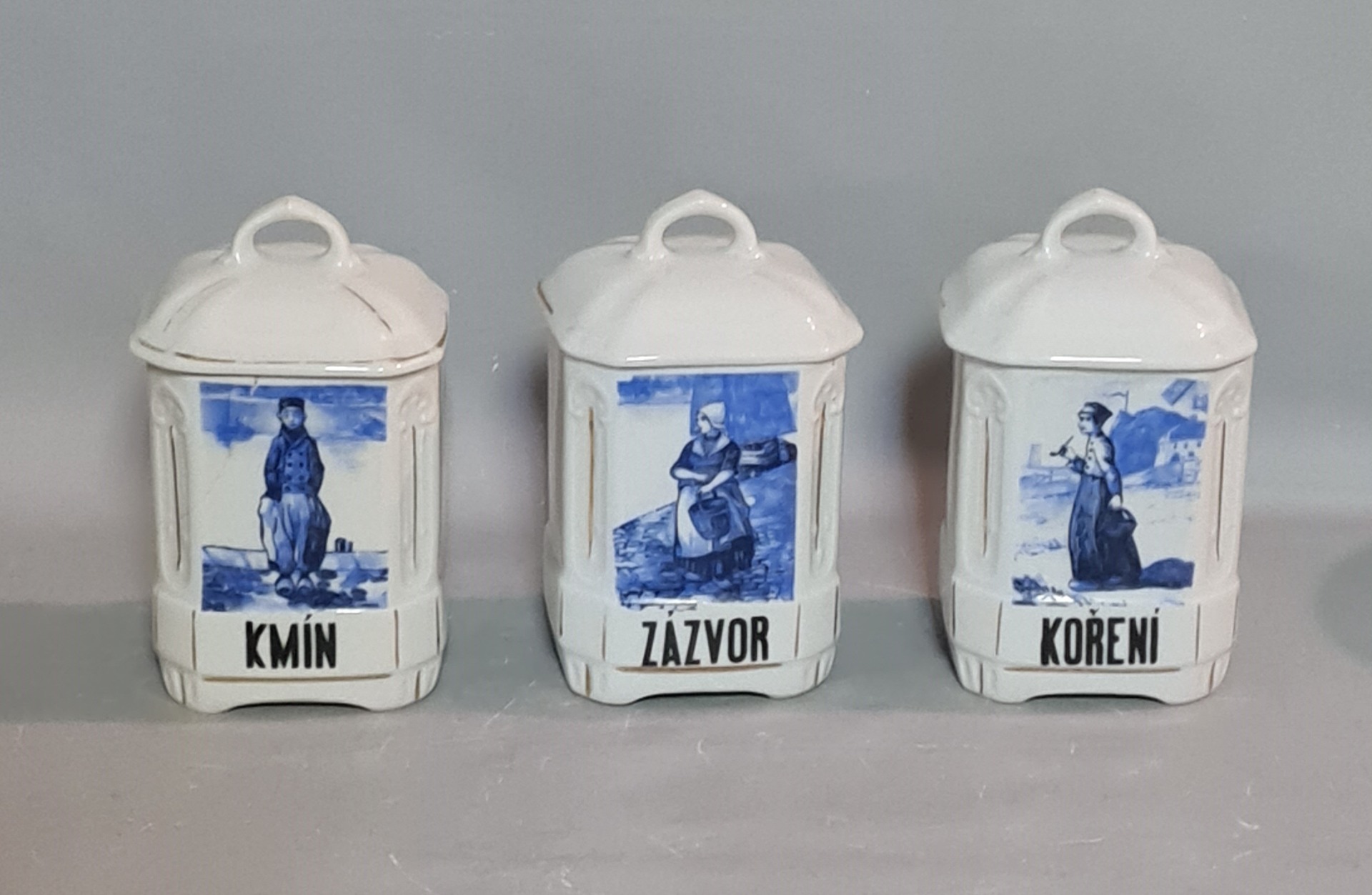Starožitné koreničky, Ditmar Urbach, modrý dekor, roky 1930 - 1940 výborný stav. Predaj len spolu