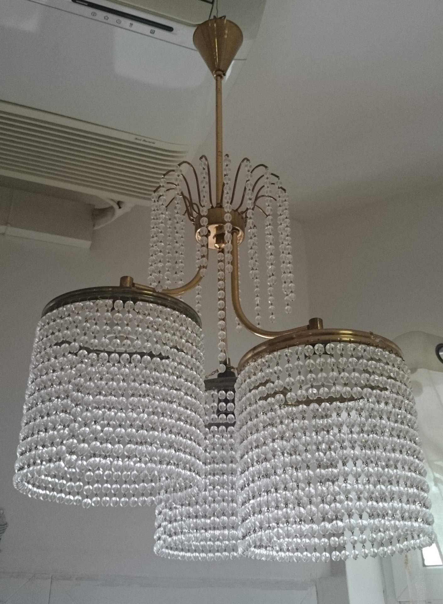 Luster dizajnový - stropnica, mosadz, 1970 - 1980